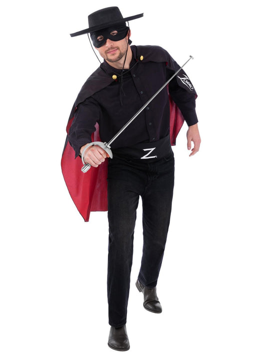 Officially licensed Zorro fancy dress costume kit which comes with cape, eye mask, hat and belt.
