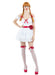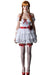 White and red Annabelle officially licensed The Conjuring horror Halloween costume with mini dress, hold ups and hair ribbons.