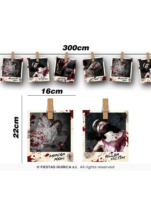 Transform any room into a chilling crime scene with this Bloody Crime Scene Photo Garland! Featuring a 2.74 metre string of gruesome photo-style im...