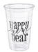 Pack of 8 clear plastic Happy New Year party cups with 473 ml capacity.