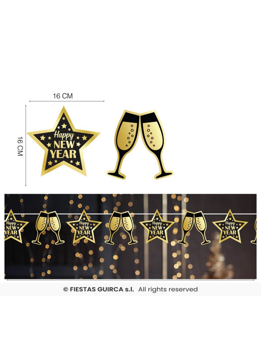3 metre long garland decoration with alternating champagne glasses and star design.