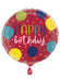 Happy Birthday 18" red round foil balloon with balloon pattern.