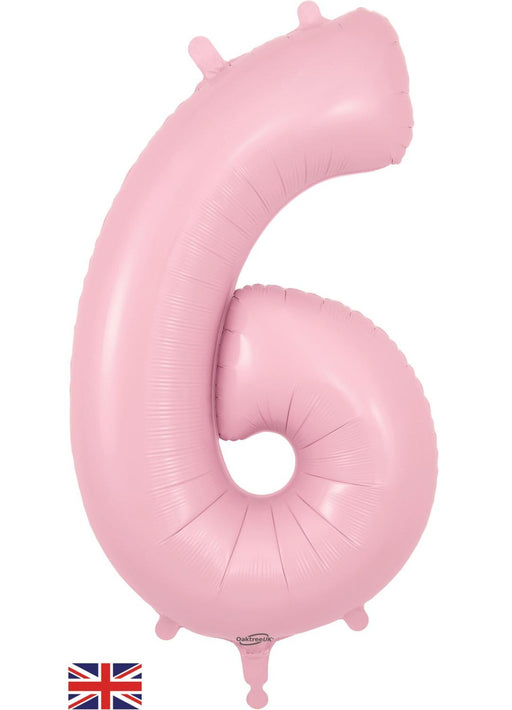Giant number 6 light pink super shape foil balloon measuring 34" in height. Click & Collect orders: Balloon supplied inflated with helium. D...