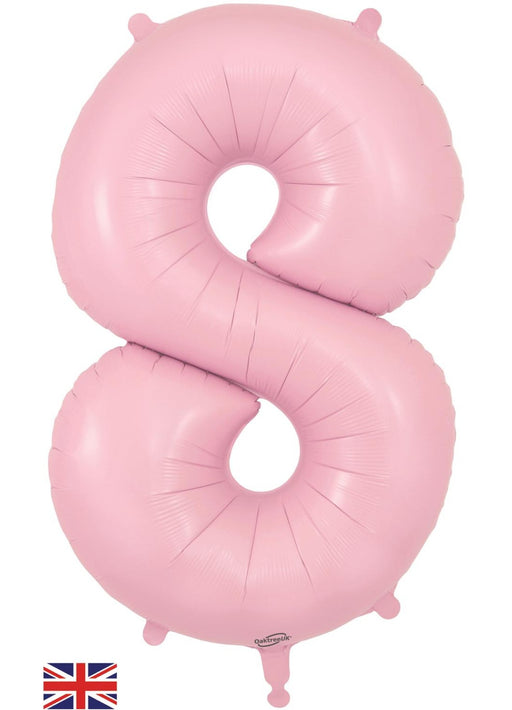 Giant number 8 light pink super shape foil balloon measuring 34" in height. Click & Collect orders: Balloon supplied inflated with helium. D...