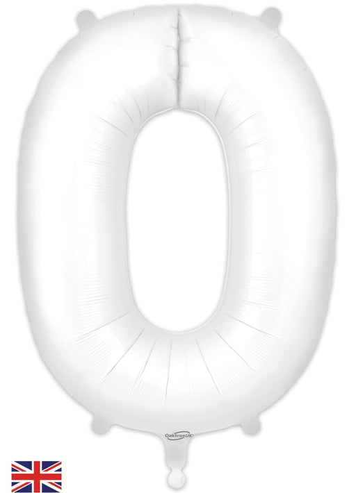 Giant number 0 white super shape foil balloon measuring 34" in height. Click & Collect orders: Balloon supplied inflated with helium. Delive...