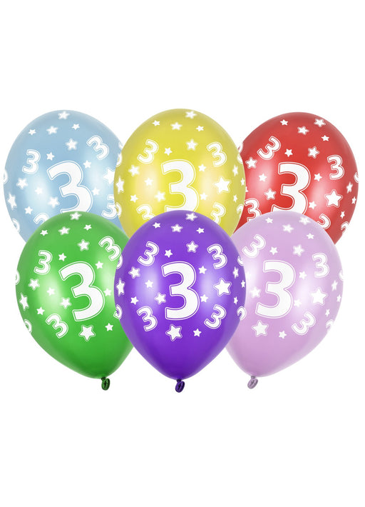 Pack of 6 happy 3rd birthday 11" latex balloons decorated with printed design & assorted colours. Price does not include helium inflation which...