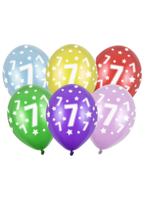 Pack of 6 happy 7th birthday 11" latex balloons decorated with printed design & assorted colours. Price does not include helium inflation which...