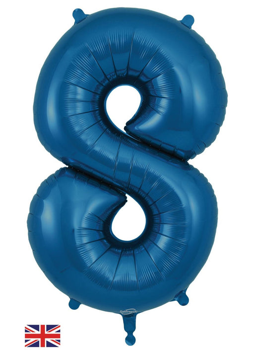 Giant number 8 navy blue super shape foil balloon measuring 34" in height. Click & Collect orders: Balloon supplied inflated with helium. De...