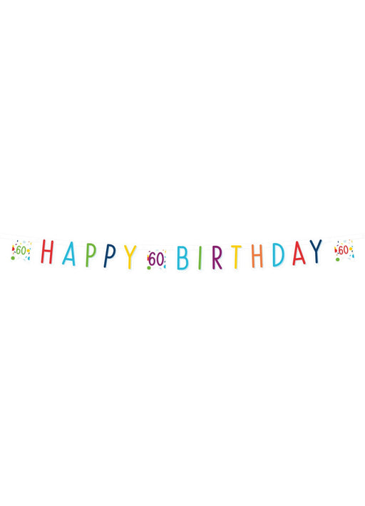 Colourful party Happy 60th Birthday card letter banner measuring 1.8 metres.