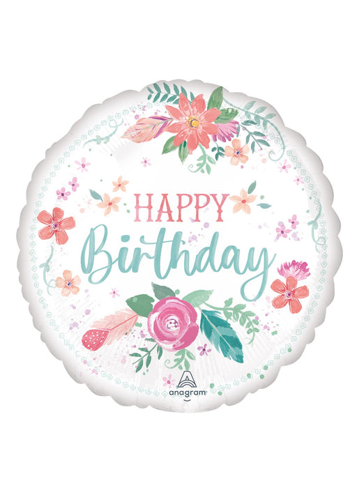 Happy birthday floral designed 17" round foil balloon. Click & Collect orders: Balloon supplied inflated with helium. Delivery orders: Ballo...
