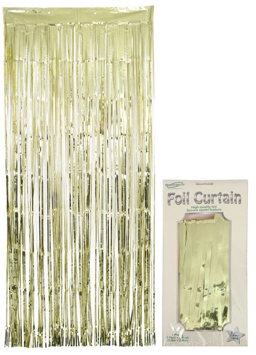 Metallic gold 1 piece foil door curtain measuring 0.9 m x 2.4 m (3 ft x 8 ft).