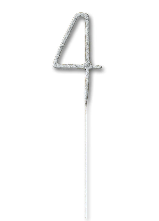 Number 4 silver sparkler candle. Ideal decoration for your birthday cake.