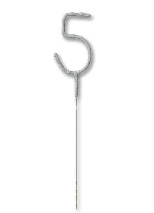 Number 5 silver sparkler candle. Ideal decoration for your birthday cake.