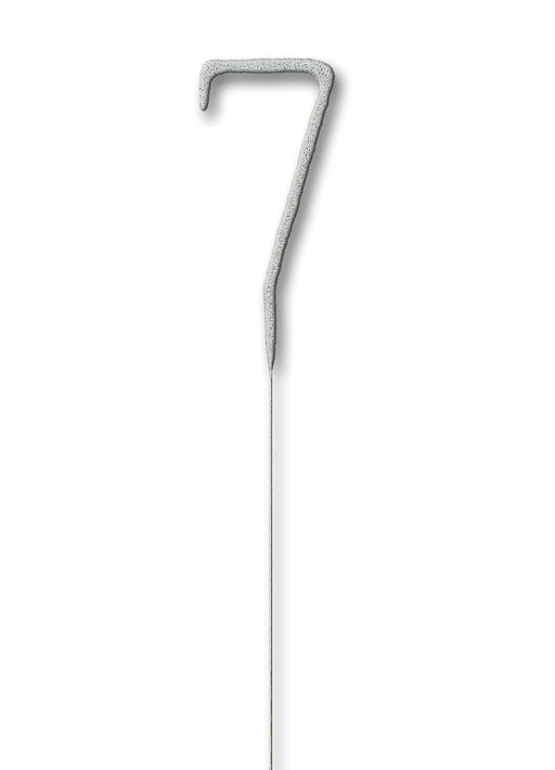 Number 7 silver sparkler candle. Ideal decoration for your birthday cake.