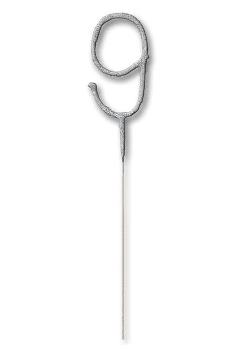 Number 9 silver sparkler candle. Ideal decoration for your birthday cake.