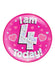 Holographic pink I Am 4 Today! 15 cm large birthday badge. You can pin it on or stand it up!