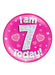 Holographic pink I Am 7 Today! 15 cm large birthday badge. You can pin it on or stand it up!
