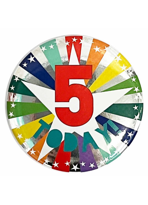 Age 5 glitter numeral moulded birthday cake candle with pick.
