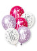 Pack of 6 age 16 Birthday Pink Glitz 12" latex perlized balloons in assorted colours. Printed all over. Supplied deflated and suitable for air or helium inflation.