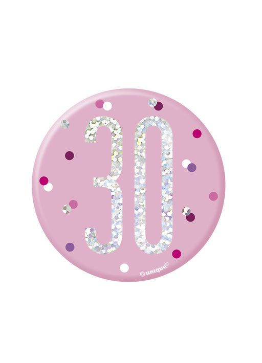Pink Glitz 30th Birthday 18" circle shaped helium balloon printed both sides. Click & Collect orders: Balloon supplied inflated with helium. ...