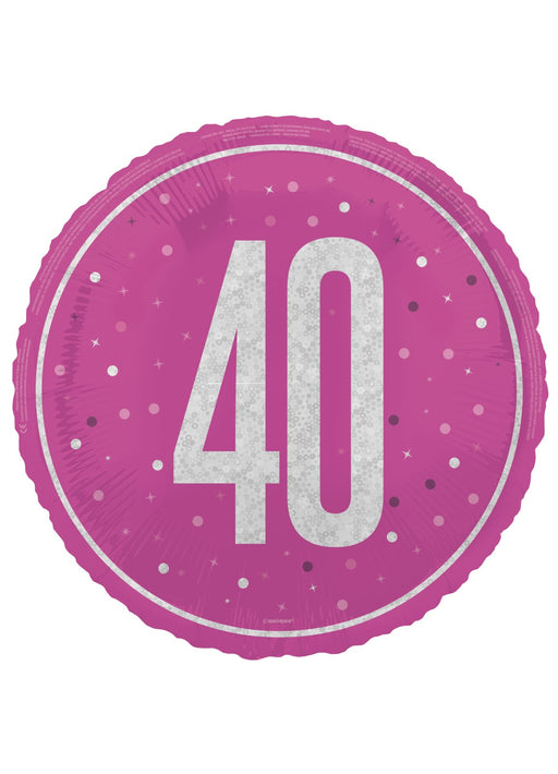 Pink Glitz 40th Birthday 18" circle shaped helium balloon printed both sides. Click & Collect orders: Balloon supplied inflated with helium. ...