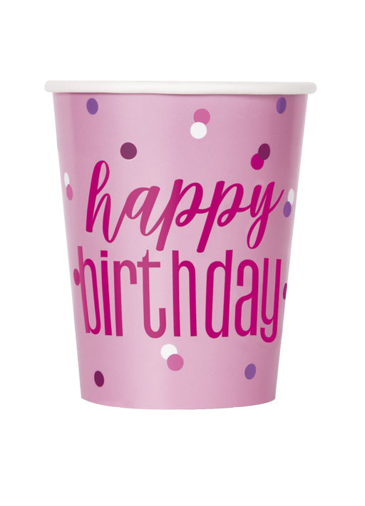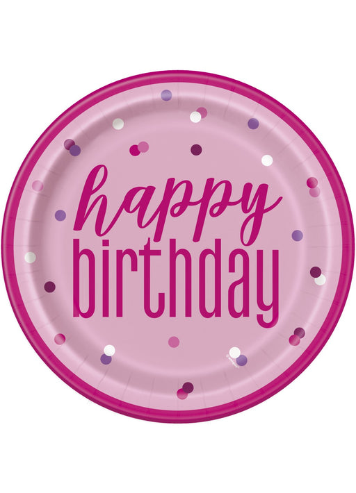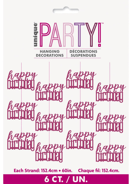 Pack of 6 pink glitz Happy Birthday party hanging decorations each measuring 60 inches/152 cm.
