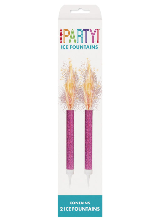 Pack of 2 pink glitz ice fountains with plastic spike bottom to apply to cake.