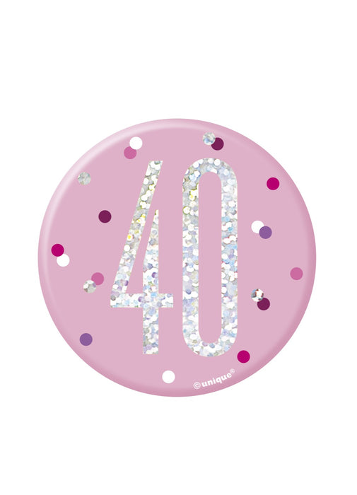 Click to expand Tap to zoom Pink Glitz Age 40 Badge Save £-0.99 £0.99 SKU U83533 1 2 3 4 5 6 7 8 9 10+ Quantity Quantity ADD TO BASKET 3 inch Pink Glitz 40th birthday pin badge.
