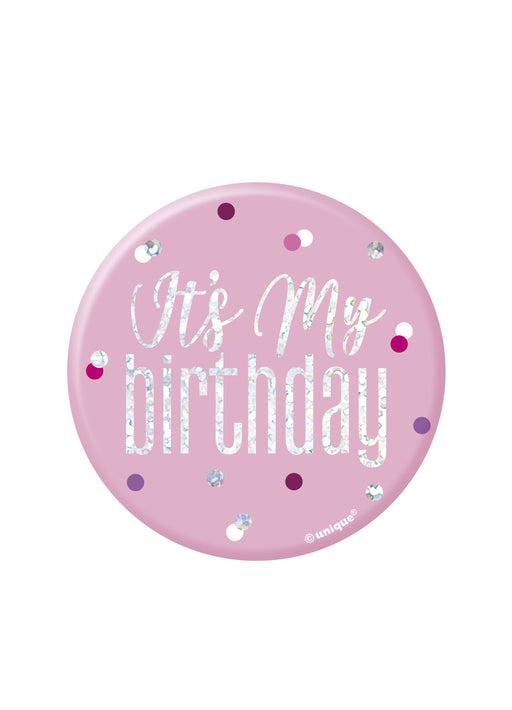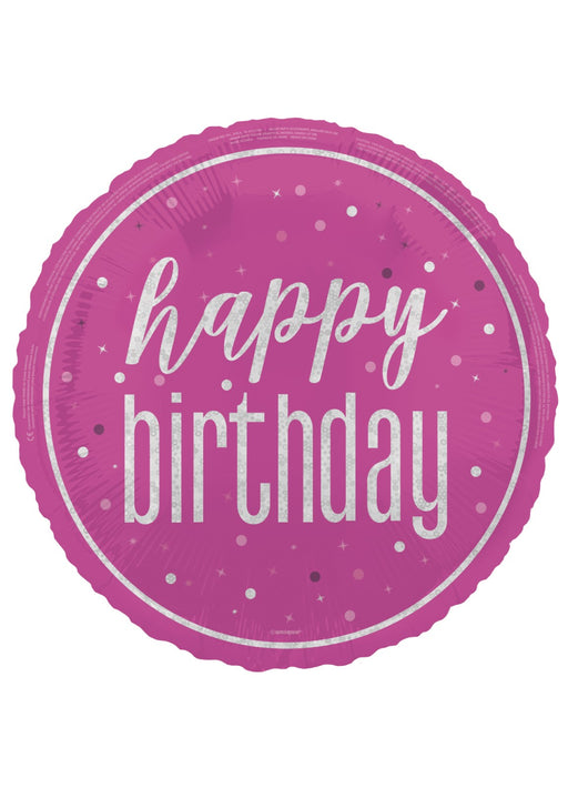 Pink Glitz Happy Birthday 18" circle shaped helium balloon printed both sides. Click & Collect orders: Balloon supplied inflated with helium...
