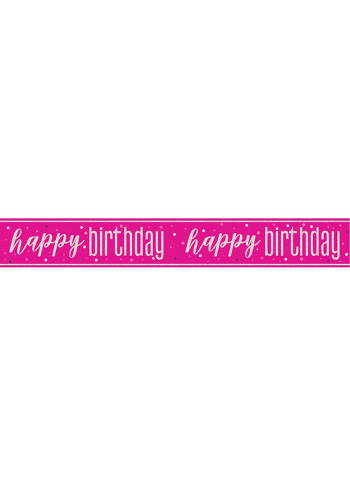 9ft / 2.74m long happy birthday Pink Glitz banner printed one side.