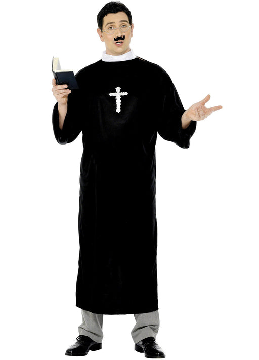 This budget priest costume includes long black robe and white collar. Add additional accessories to complete the look. Size Chest Waist Inside...