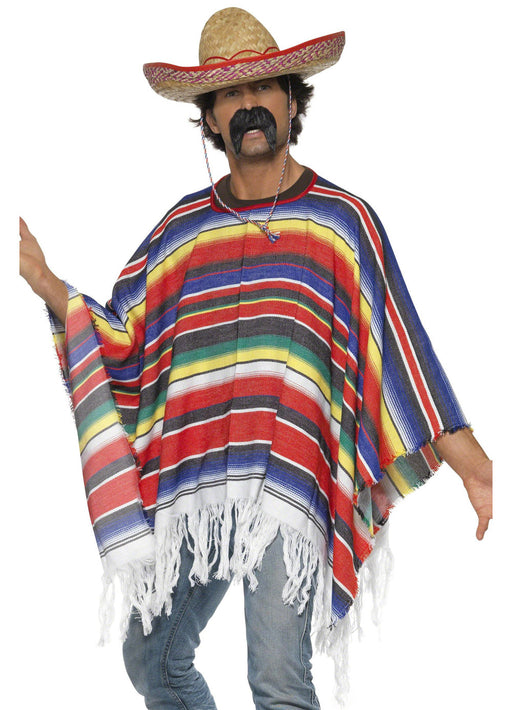 Brightly coloured poncho with white fringe. Add a moustache and sombrero to complete the Mexican look. As this is a unisex garment it could be used...