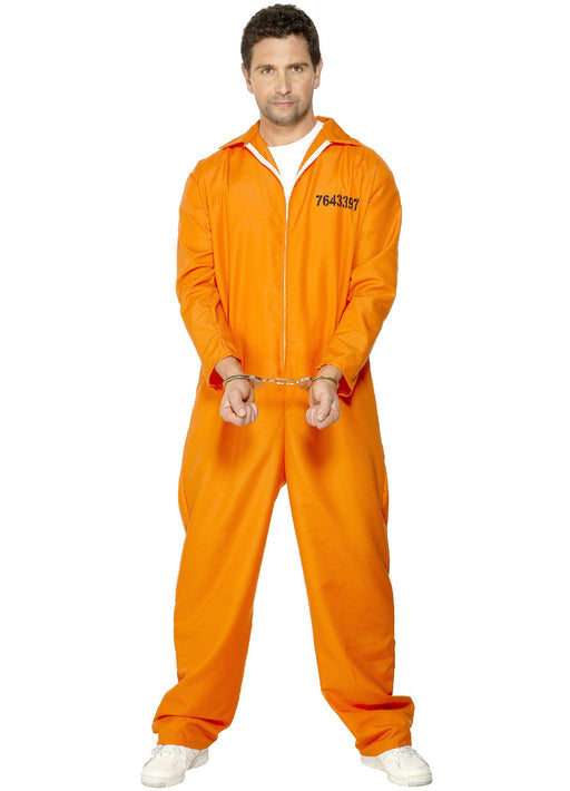 This Escaped Prisoner costume consists of orange boiler suit with front zip and printed convict number on left breast and on the back the words EAS...