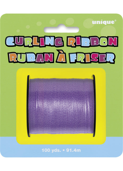 100 yards / 91.4 metres of purple curling ribbon for balloons or gift packages.
