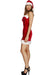 Women's Fever Miss Santa fancy dress costume consisting of red velvet effect dress with white trim & halterneck, front chest mesh panel & matching santa's hat.