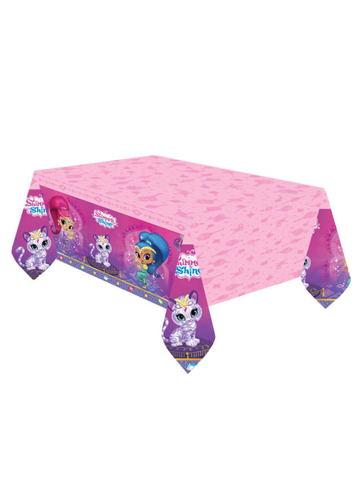 Plastic tablecover measuring 1.8m x 1.2m printed with Shimmer and Shine children's programme theme.