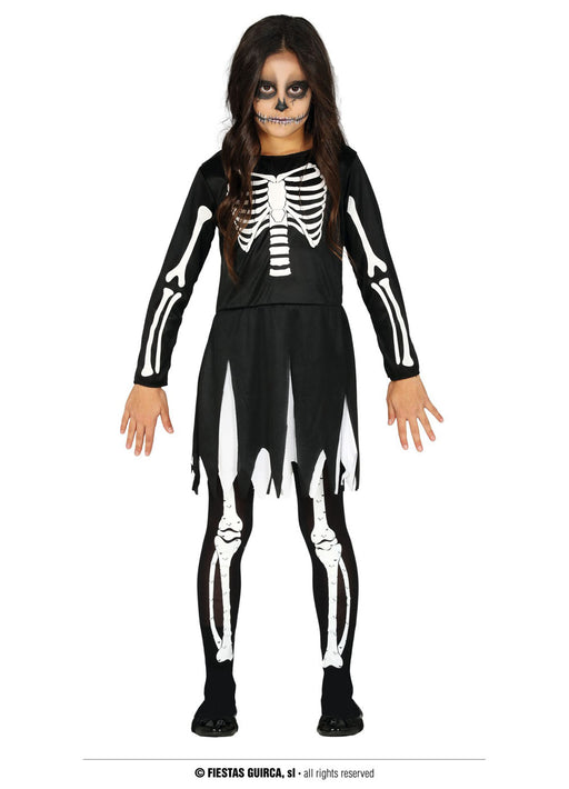 Skeleton tutu costume child consisting of black skeleton print dress with attached black and white layered tutu skirt. Add our skeleton make up kit...