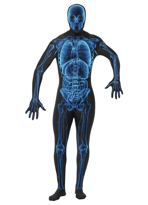 Halloween second skin X-ray suit fancy dress costume with concealed fly and under chin opening for drinking. Size Chest Waist Inside Leg Sma...