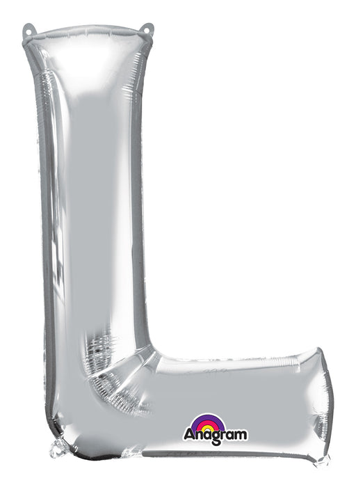 Letter L silver air filled balloon measuring 16" in height. Pack includes a straw for easy inflation.