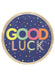 Colourful Good Luck round foil balloon measuring 18" (45 cm) when inflated.