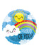 Proud of You message round 17" foil balloon with sky, sun, cloud and rainbow design.