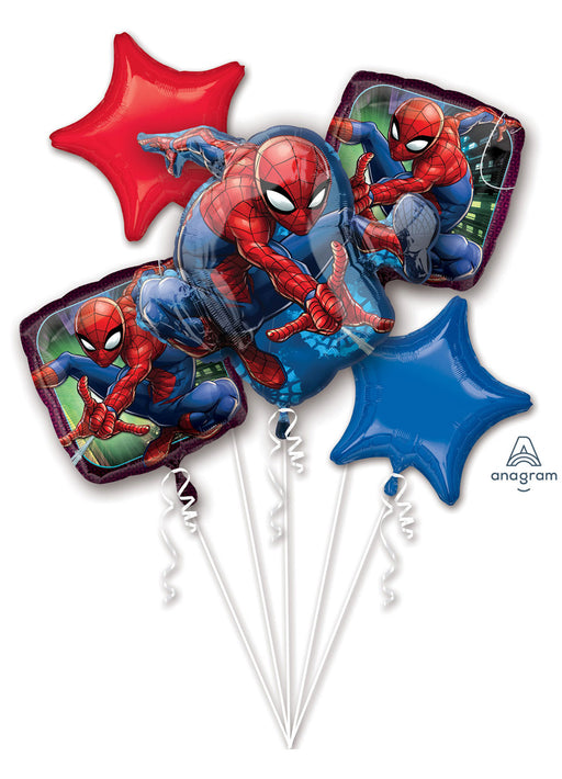 Official licensed Spider-Man themed foil balloon bouquet consisting of 1 x royal blue star shaped balloon, 1 x red star shaped balloon, 2 x 17" th...
