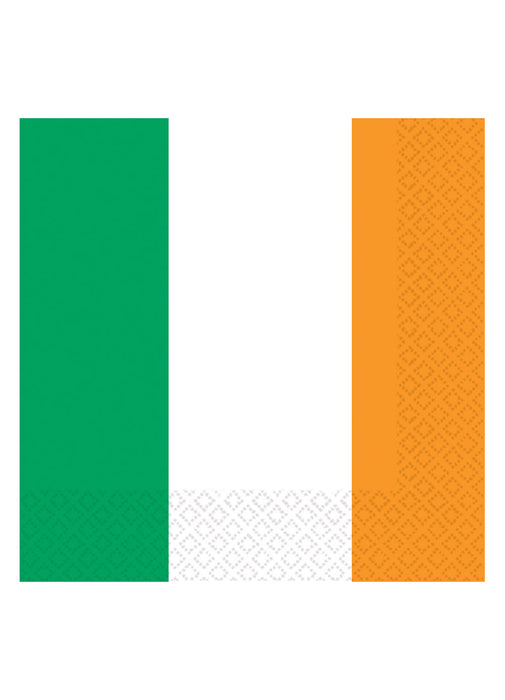 Pack of 16 Ireland paper napkins decorated with the flag colours.