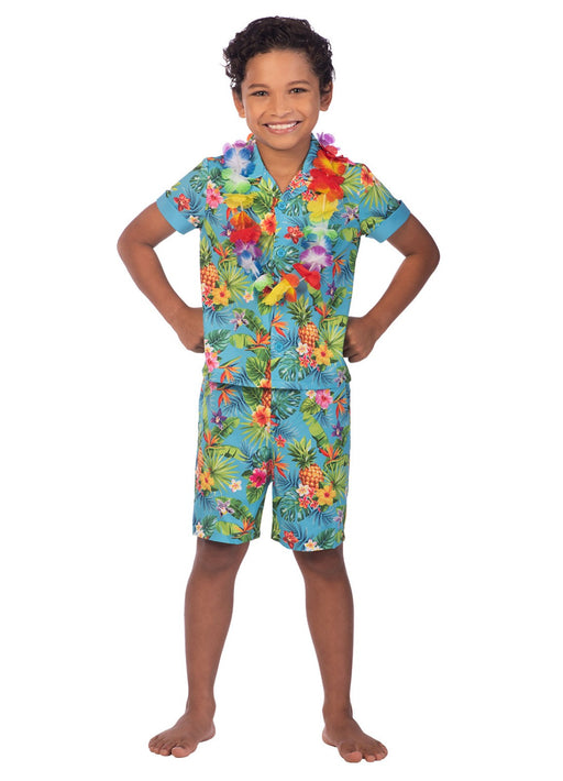 This complete Hawaiian children's costume comes with blue patterned Luau style shirt with matching shorts and a flower lei necklace. Available in 4...