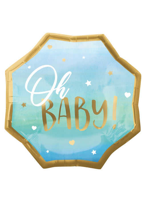 Blue Oh Baby super shape foil balloon measuring 55 cm x 55 cm when inflated. Click & Collect orders: Balloon supplied inflated with helium. D...