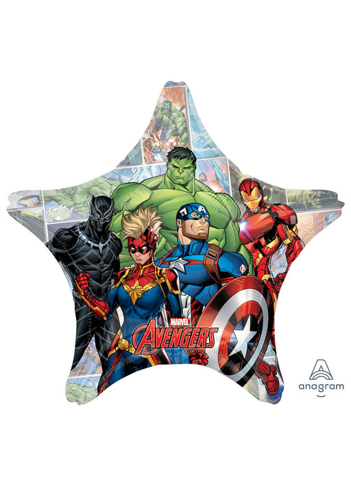 Giant star shaped licensed Avengers character foil balloon measuring 71cm (28") when inflated. Click & Collect orders: Balloon supplied infla...