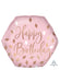 Rose gold & pink blush large hexagon shaped Happy Birthday foil balloon measuring 58 cm x 55 cm (23" x 22") when inflated.