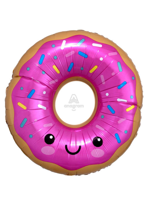 Large double-sided round donut design foil balloon measuring 68 cm x 68 cm (27" x 27") when inflated. Click & Collect orders: Balloon supplie...