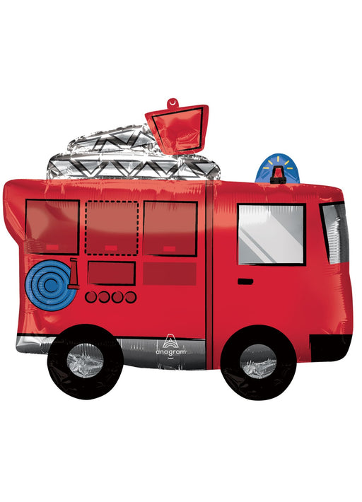 Red fire truck super shape foil balloon measuring 66 cm x 55 cm (26" x 22"). Perfect for any budding Fireman Sam! Click & Collect orders: Bal...