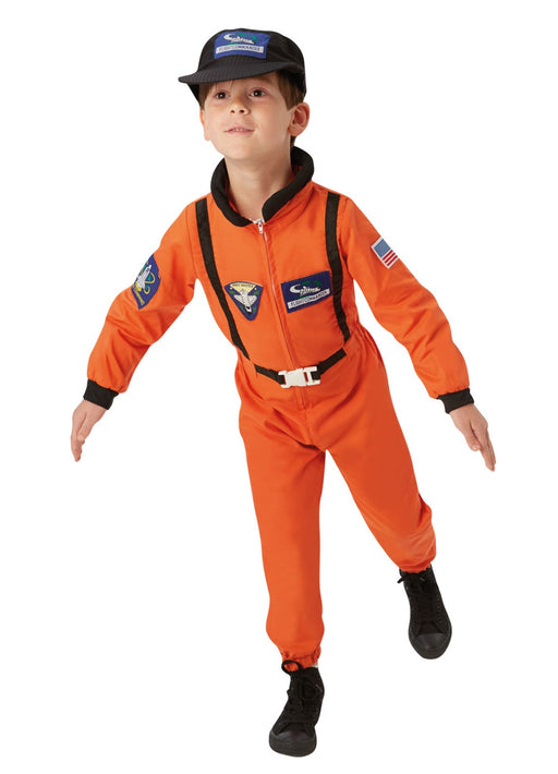 This child's astronaut costume consists of an orange jumpsuit with authentic clips, straps, patches and cap. Size Age Height Small 3-4 years...